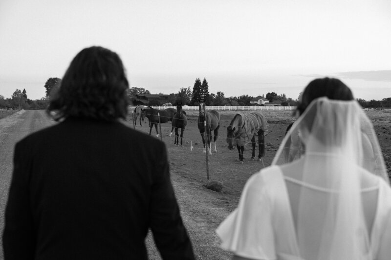 As the day turned to evening, the light at White Ranch transformed into something magical. The golden hour washed the fields in warmth, wrapping Conner and Madisen in a soft, dreamlike glow. We slipped away for portraits among the pasture fences, where the quiet beauty of the moment felt timeless, and even a few curious horses wandered over to join us, adding a bit of playful wonder to the scene.